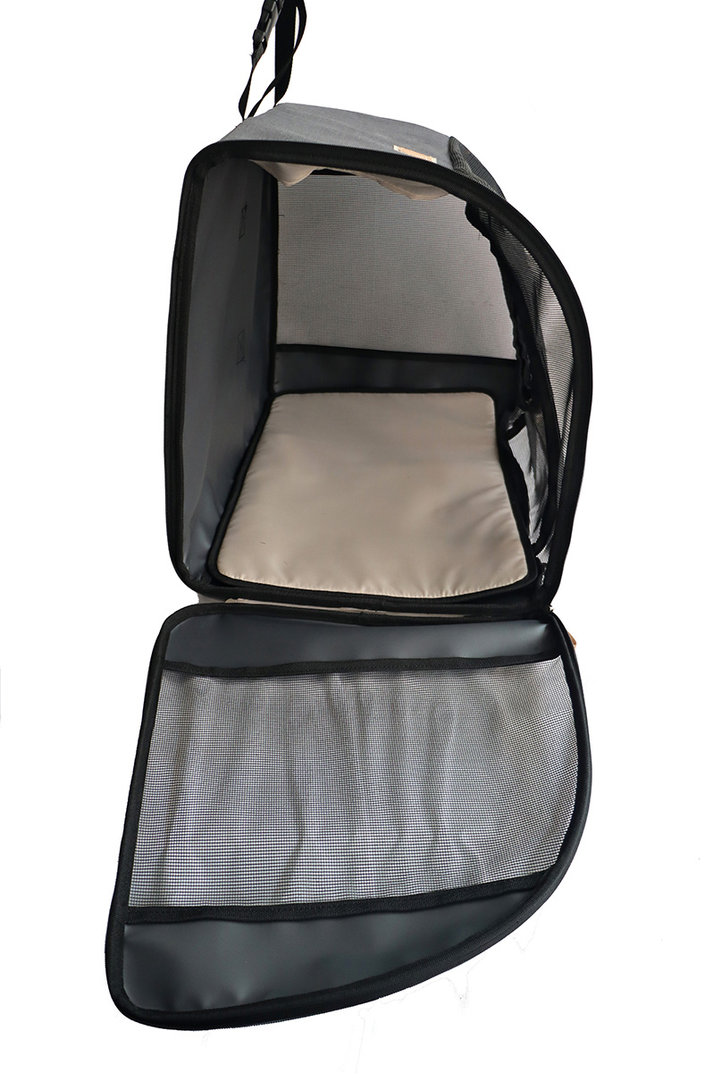 *The ‘hard break’ test effectuated with a load of 17 kg: the Car Seat preserves its shape without being folded or deformed, softly bouncing the object inside, thus not causing any damage or even a small hurt to a pet hidden inside.
